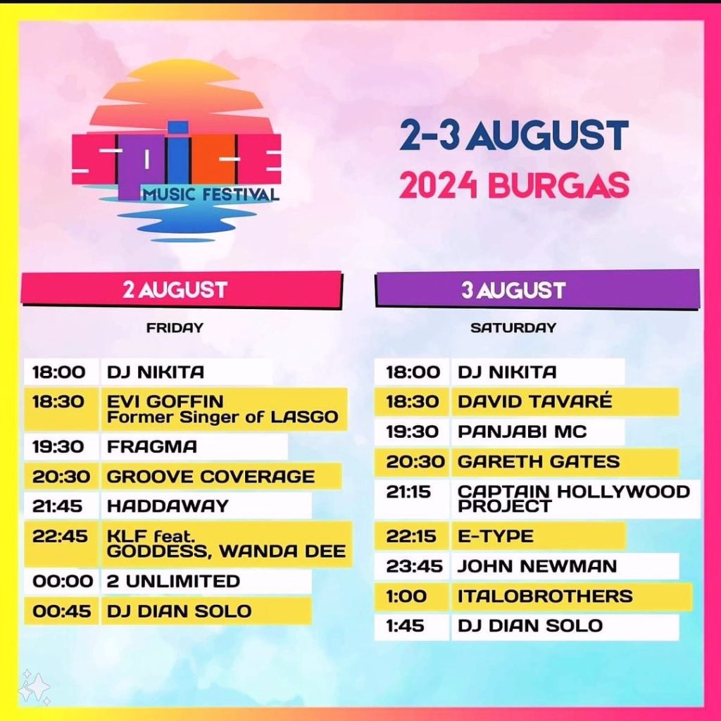 Reamintim că Spice Music Festival va avea loc pe 2 și 3 august în portul Burgas din Bulgaria. Biletele se pot achiziționa de AICI.